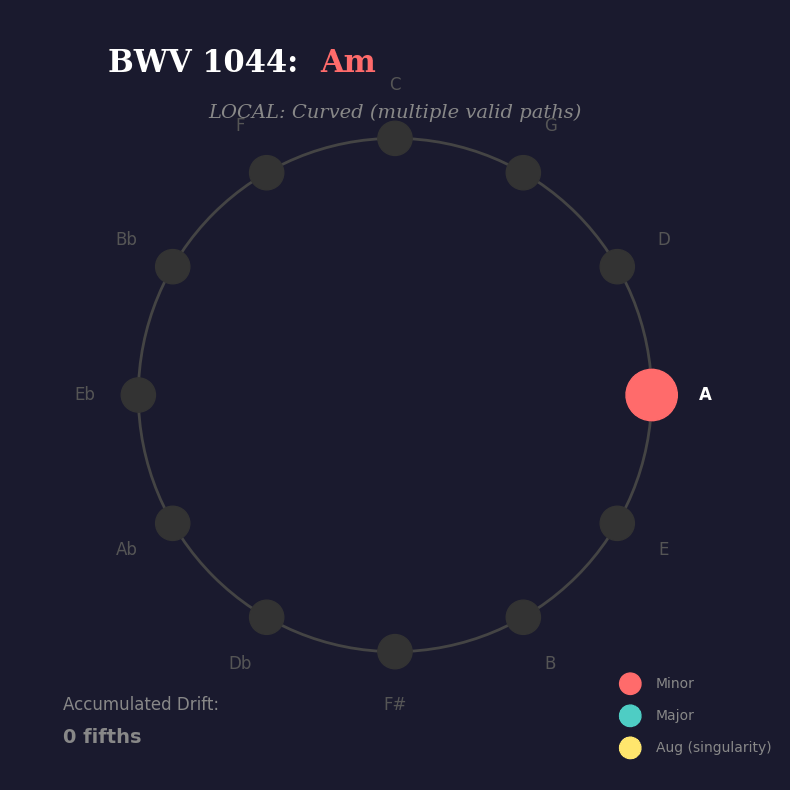 We’ve shown that Bach solved this 300 years ago with inverse Riemannian structure: local curvature (ambiguity at each step), global flatness (must return to tonic).