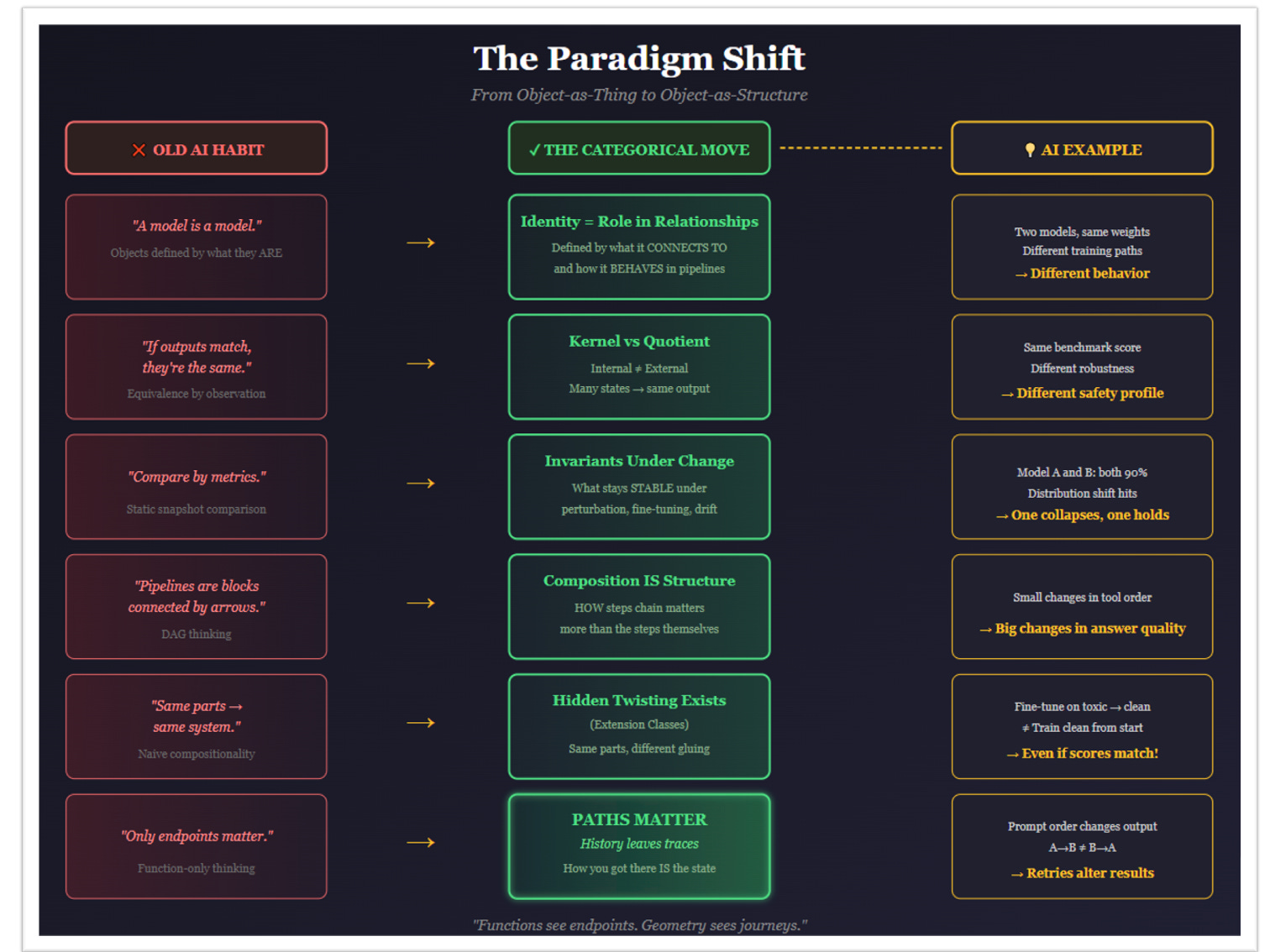 And no amount of categorical vocabulary will save a system that forgot geometry, history, and paths.