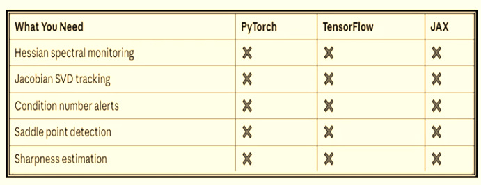 Right now, no commercially available AI framework gives you these basic eigenvalue predictors. Instead, you’re hand-tuning learning rates and hoping…