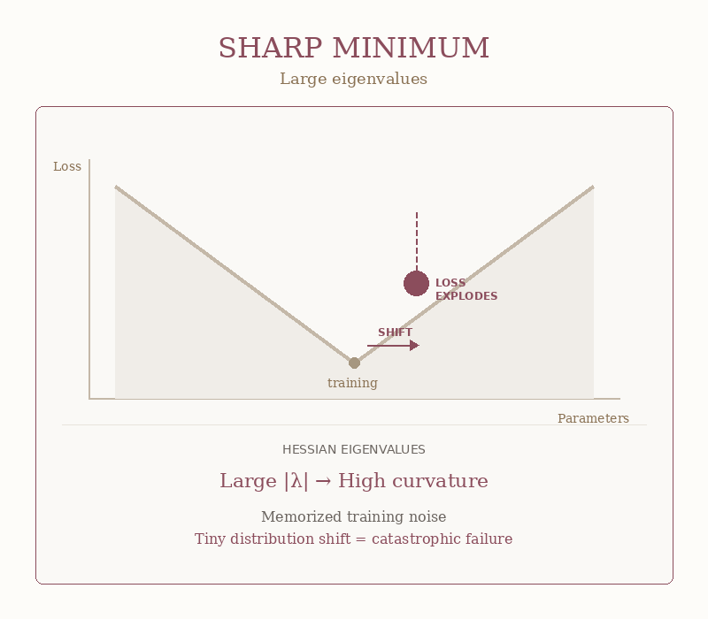 Your model that crushed the benchmark and died in production? It found a sharp minimum. The eigenvalues would have told you… but nobody checked.
